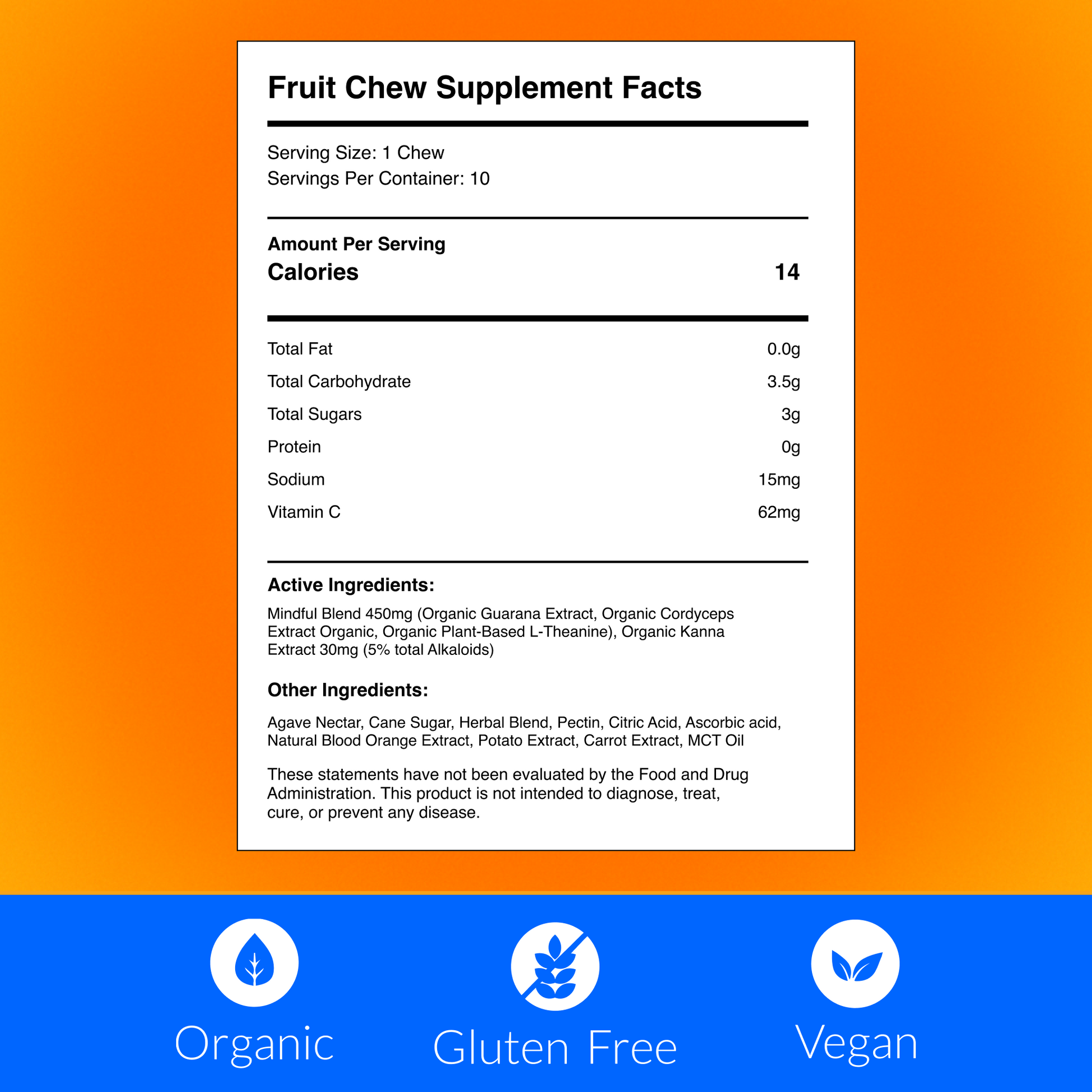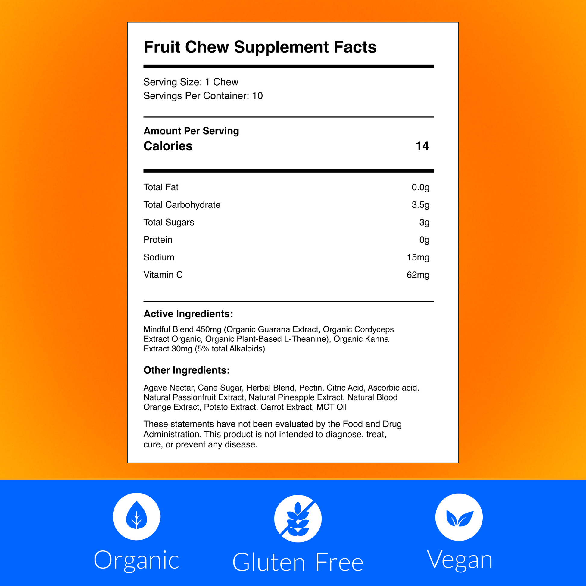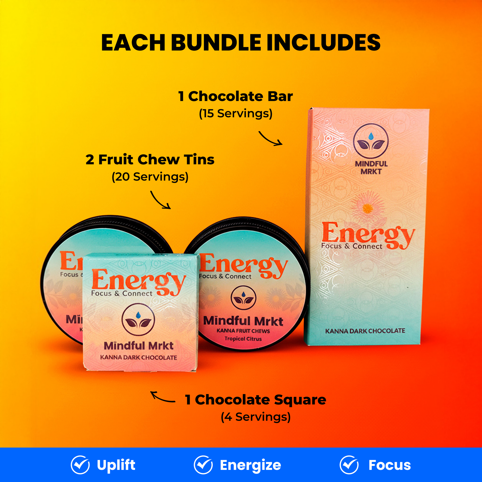 Our Kanna Energy blend is a functional wellness chew made with complementary botanicals to support smooth energy, focus, and calm connection.